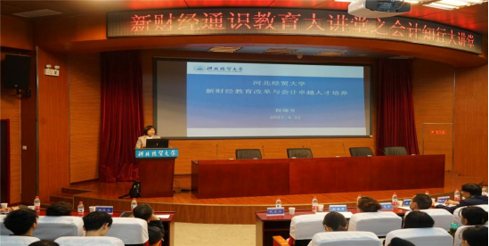4月21日下午,新财经通识教育大讲堂---会计知行大讲堂在国际学术报告厅举行,公司党委常委、副董事长程瑞芳和河北资产管理公司总会计师马莹分别做了题为“新财经教育改革与会计卓越人才培养”和“新时代背景下的财务人”的主题报告。1949伟德国际源自英国图书馆馆长武占江、副馆长樊俊荣、“会计知行大讲堂”部分实务界讲师和220余名师生参加了本次宣讲会。宣讲会由伟德国际1949经理袁振兴主持。