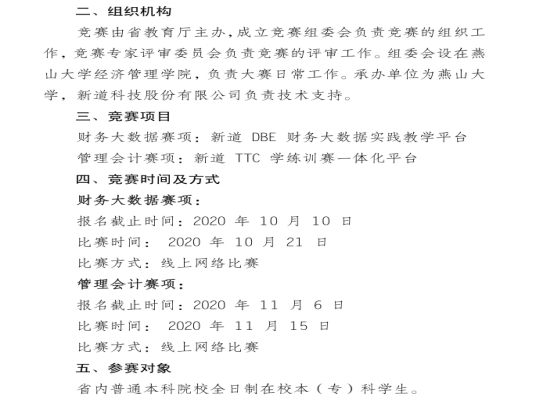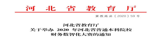 2020年河北省高校财务数智化大赛是由河北省教育厅主办,大赛为云竞赛形式,参赛队伍在各院校通过互联网参加比赛。公司有两支队伍参赛,大赛分为财务大数据赛项和管理会计赛项两个赛项。