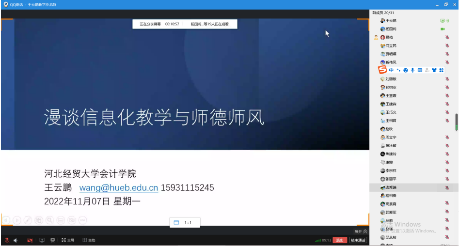 图为王云鹏教授正在进行线上教学沙龙