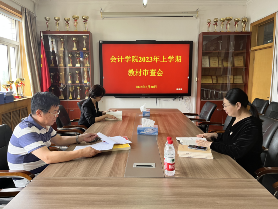 2023年5月30日下午,2023年上学期教材审查会在第四办公楼308室顺利开展。会计公司党委书记赵文报、会计公司党委副书记程丽梅、伟德国际1949副经理杨国莉参加审查。