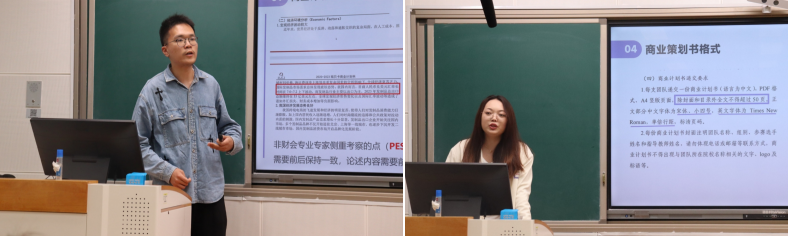 2024年获得全国亚军的团队代表陈一诚和屈净源两位同学展示了团队的获奖成果,并向大家详细阐述了比赛心得,从初期的ppt制作、商业计划书的撰写、视频的拍摄到后期的现场答辩,为即将参加比赛的选手们提供了宝贵的经验。