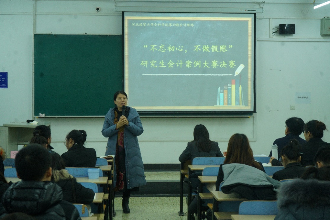 赛后,李经理进行了总结,她对参赛选手的组织、表达能力做出了肯定,同时,她指出举办案例大赛的目的是通过比赛提高同学们的学术素养和发现问题、分析问题和解决问题的能力。她鼓励同学们在以后的工作中能够不忘初心,不做假账,做会计行业的领军人。