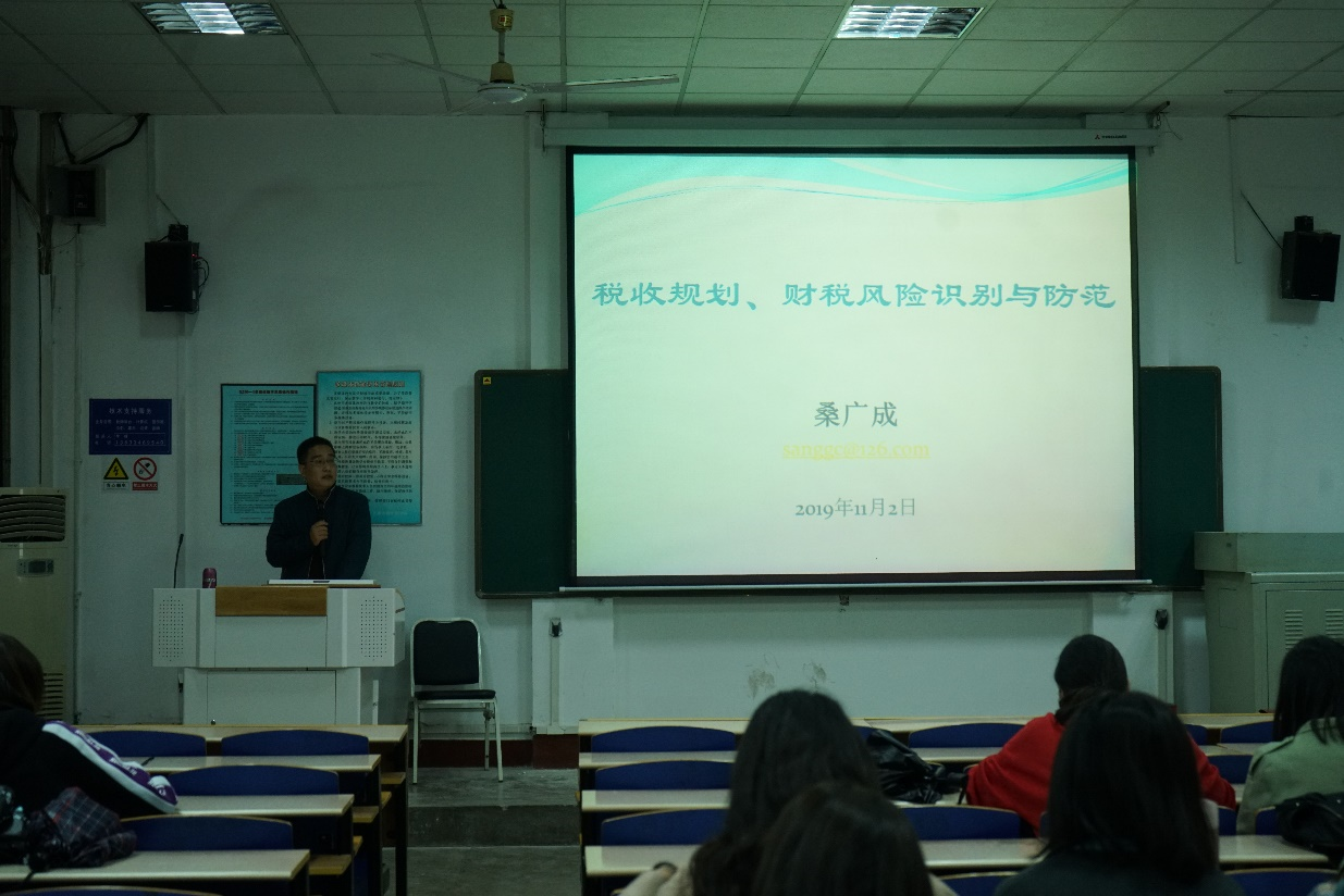 11月2日上午,受伟德国际1949邀请,河北省第一期企业类会计领军人才桑广成于二教201教室作题为“税收规划、财税风险识别与防范”的学术报告。2018级研究生100余人参加此次报告会。