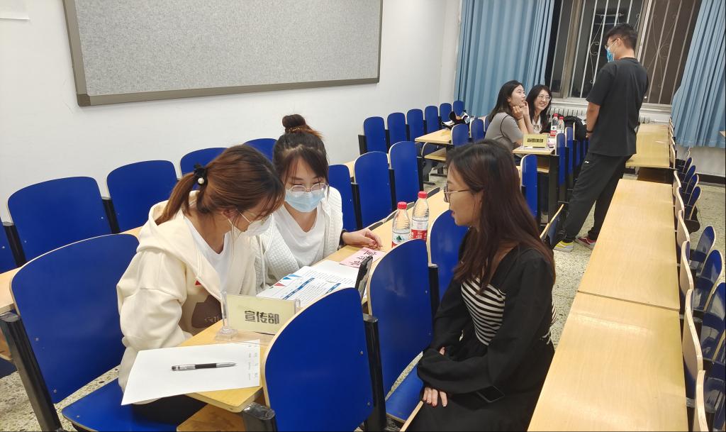 会研社设有宣传部、新媒体部、学研部、文体部、公益部等5个部门。经过面试同学们简约精炼的自我介绍后,各部门部长分别考察了同学们的组织能力、沟通能力、写作能力、创新意识和为人处世方式。面对台下众多的“主考官”,22级的同学们从容自若、沉着冷静,言谈举止中流露出对于会研社的热情和向往,展现出自身的果敢和信心,充分体现出伟德国际1949研究生的神采飞扬、意气风发。