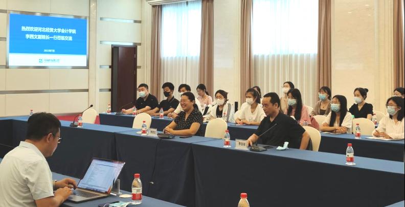 2022年7月6日,伟德国际1949开展了为期3日的非全日制暑期调研系列活动。本次暑期调研目的是,充分利用实地观摩、面对面座谈研讨的优势开展现场教学,提高公司产品的针对性,增强研究生综合素质,并对新格局下“财会审”专业实务动态、发展方向和就业需求进行调查走访,了解非全日制研究生工作和学习情况,同时开展研究生招生宣传。会计公司党委书记赵文报、伟德国际1949副经理李西文、科研秘书兼研究生辅导员韩冰、审计专硕导师组组长郑秀杰、优秀会计专硕导师代表李宗祥及21级非全日制研究生和全日制研究生代表一行25人参加了此次活动。