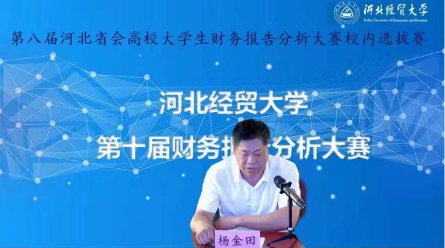 杨金田副董事长为大赛开幕致辞。杨金田副董事长简单介绍了公司情况,指出学科竞赛能够连续举办八届,是坚持和传承,同时也是“新财经”改革的创新和探索,预祝大赛顺利举办。
