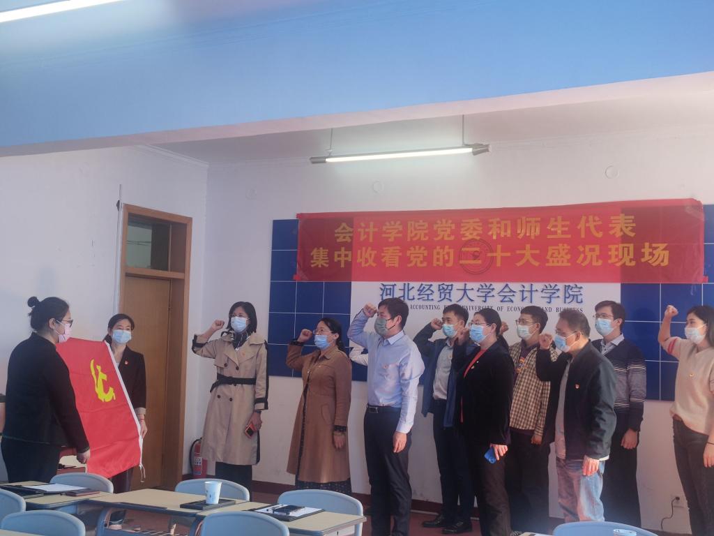 10月16日上午10时,中国共产党第二十次全国代表大会隆重开幕。会计公司党委及师生党员代表于四办332,员工党支部于B教101、110、103、102集中观看中国共产党第二十次全国代表大会直播,伟德国际1949全体党员干部以及员工党员共193人参加集中观看学习。