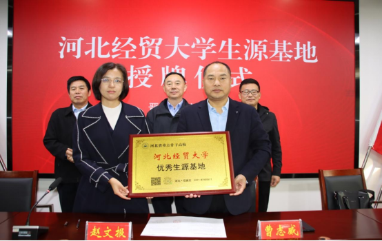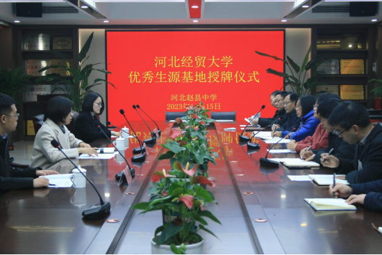 11月15日,会计公司党委副书记程丽梅、团委书记周晓玲、专职辅导员贺伟赴赵县中学举行“优秀生源基地”授牌仪式,赵县中学董事长席卿芬出席,全体高三年级优秀班主任和员工代表参加。