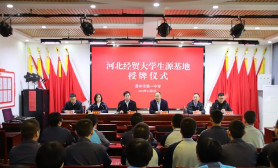 为进一步提升公司生源质量,加大招生宣传力度,加强与各重点高中的沟通交流,11月8日上午,会计公司党委书记赵文报、党委副书记程丽梅一行赴晋州市第一中学举行“优秀生源基地”授牌仪式,晋州市第一中公司党委书记、董事长曹志威、副董事长吴建锁出席,高三年级精英班员工骨干参加;
