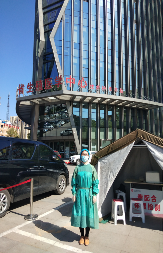作为班级一名员工干部、共青团员,在看到无数医护人员义无反顾地奔赴抗击疫情一线后,她主动请缨,通过岗前培训,成为河北生殖妇产医院第一批预检分诊人员。从大年三十这个本该阖家团圆的日子开始正式上岗,时至今日20多天过去了,一直在抗疫一线默默地奉献和坚守。