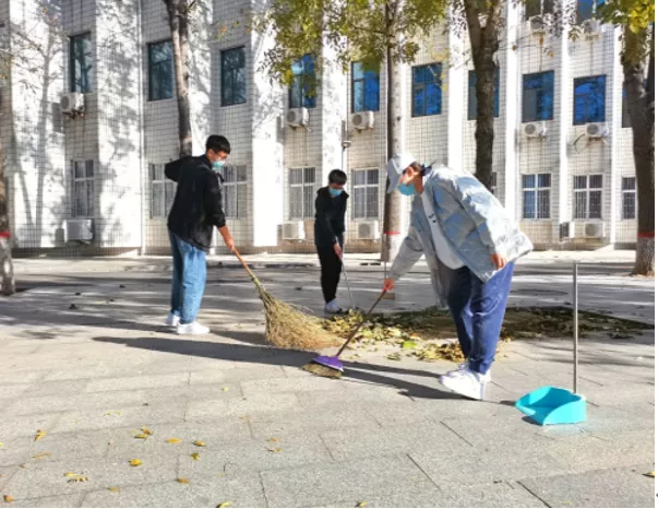 秋冬之间,落叶纷飞,铺满校园的落叶给骑车出行的同学造成了一定的困扰。党支部组织郑明浩、郭文清等同志担起了“校园清洁工”的职责,拿起扫帚行走在校园的各个角落,为道路清洁奉献了自己的一份力量。