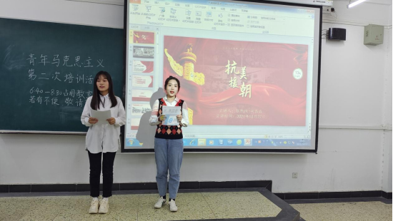 青年讲师团两位宣讲人以一段抗美援朝时期的记录片为引,为青马学员展示了中国人民志愿军英勇抗敌的光辉史诗,带领青马学员走进历史,学习抗美援朝精神。