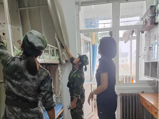 周晓玲老师检查宿舍内务
