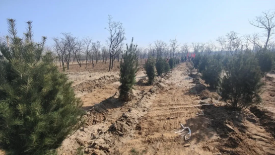 活动开始前,负责人向志愿者强调相关注意事项,保证植树活动顺利开展。志愿者领取植树工具与树苗后一起前往植树地点。在专业护林工作者的指导下,参与植树的师生分工协作,挥锹培土、扶树正苗、浇水灌根……配合默契,干劲十足。忙碌的身影与生态的绿色融合在一起,一棵棵树苗在阳光下显得愈发生机勃勃。经过2个小时的共同努力,志愿者们共栽苗株,为管护中心增添了一片新绿与浓浓春意。