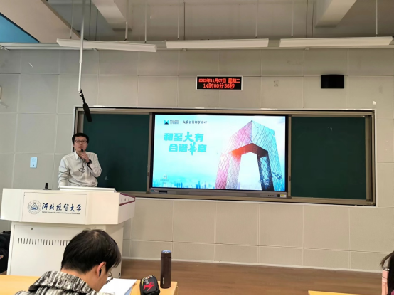 宣讲会开始后,HR卢军军为参会同学播放了大华会计师事务所宣传片,让大家对公司有了更加直观深入的了解,随后介绍了公司发展概况、业务范围、薪酬状况及本次招聘需求等,最后解答了实习要求、职业发展等参会同学关心的问题。