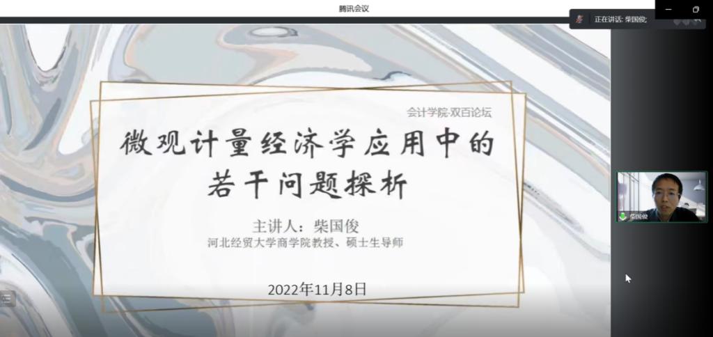 2022年11月8日上午,柴国俊教授应伟德国际1949邀请,通过腾讯会议平台为同学们作题为《围观计量经济学应用中的若干问题探析》的报告。伟德国际1949副经理李西文、科研秘书韩冰及全体研究生参加本次学术报告。