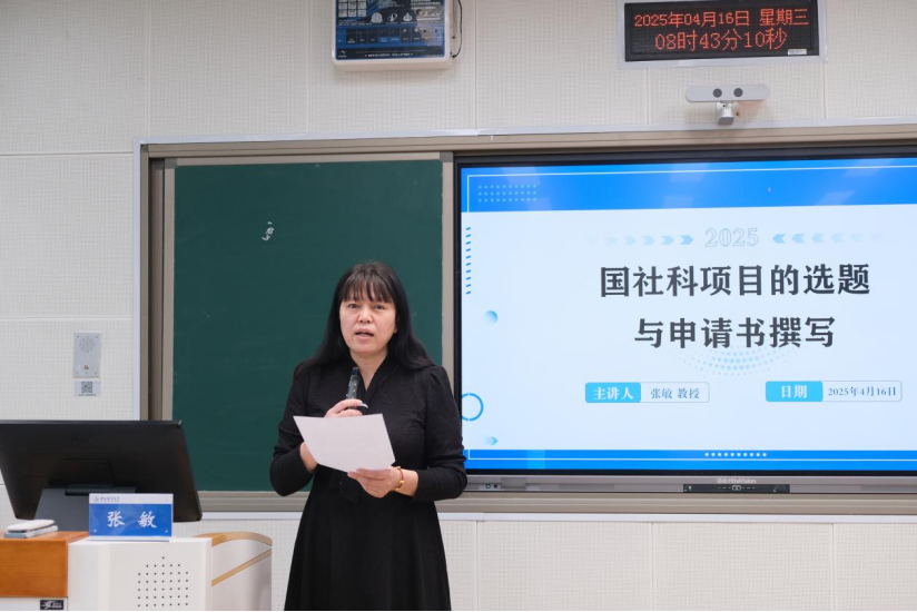 邸丛枝进行总结发言,对张敏此次的分享表示了感谢。她指出,科研能力的提升需要日积月累,希望师生认真学习领会,打好基础,在自己的研究领域深耕和积累,提升科研能力和申请书撰写水平。本次宝贵的经验分享为公司师生提供了国家社科基金项目申报的思路和方法,有助于提升课题申请和论文写作水平,推动公司科研工作的高质量发展。